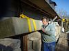Repairing the gables, covering the roof with slates, zinc guttering and treating the timbers. |