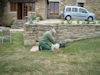The north side wall on the main house going up. More stone to sort, and now also gardening. |
