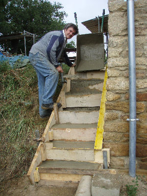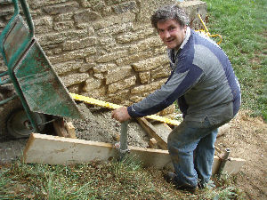 Left Gerry on the next stage of pointing, right making up some concrete