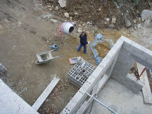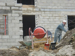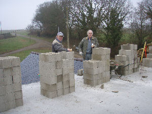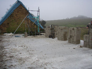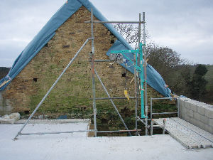 the gable ends and stabilise them ready for the roof. Gerry now mixing