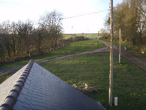 next month they will start the roof construction. We will have the carpentry done first as we then have to go back up and fill in the rest of the gables and repair the chimney so then the roof can be covered with slate, should be an interesting month. Just a few views again from the top, left a view to the south, right to the north up the drive way disappearing over the fields. |
