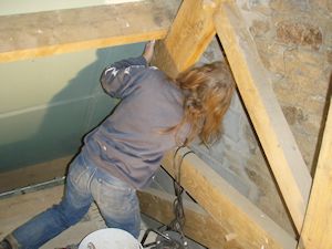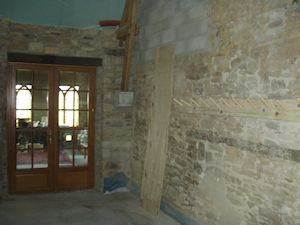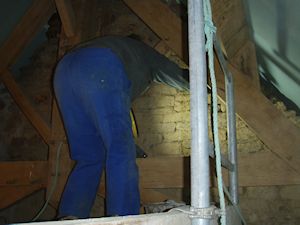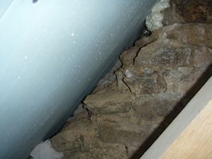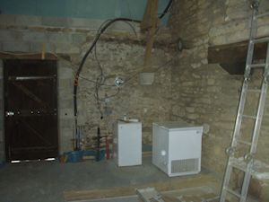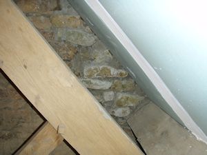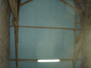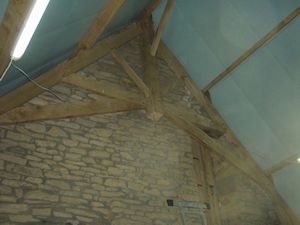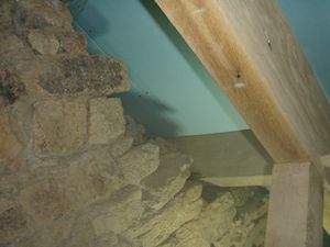 roof trusses. So stone and cement hauled up and built in. Not much room