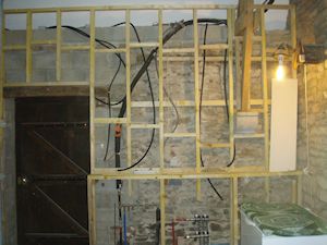 Then the plaster board, ok for the lower outside wall but a bit of a