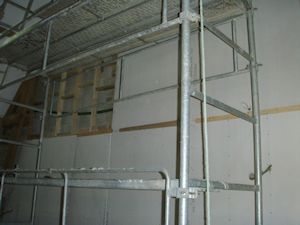 Then its on to the main 7 meter high wall. Scaffolding again and after